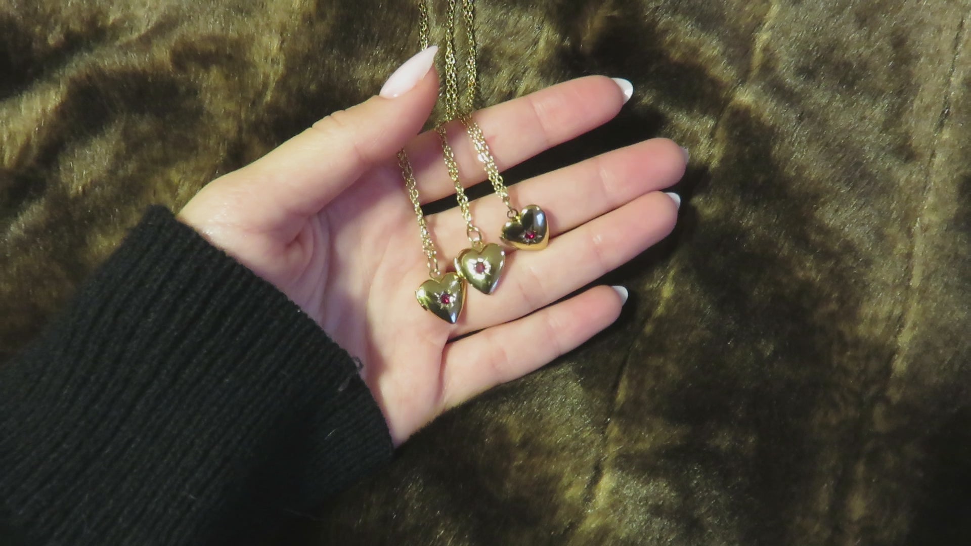 a tiny heart locket designed for everyday elegance. made from 316L stainless steel with a rich PVD gold finish, this piece is fully tarnish free and hypoallergenic, made to stay shiny and golden no matter how often you wear it. At its center sits a delicate red zircon stone, a subtle “kiss” of color. The locket opens, making it perfect for keeping a tiny photo, note, or personal secret close to your heart.