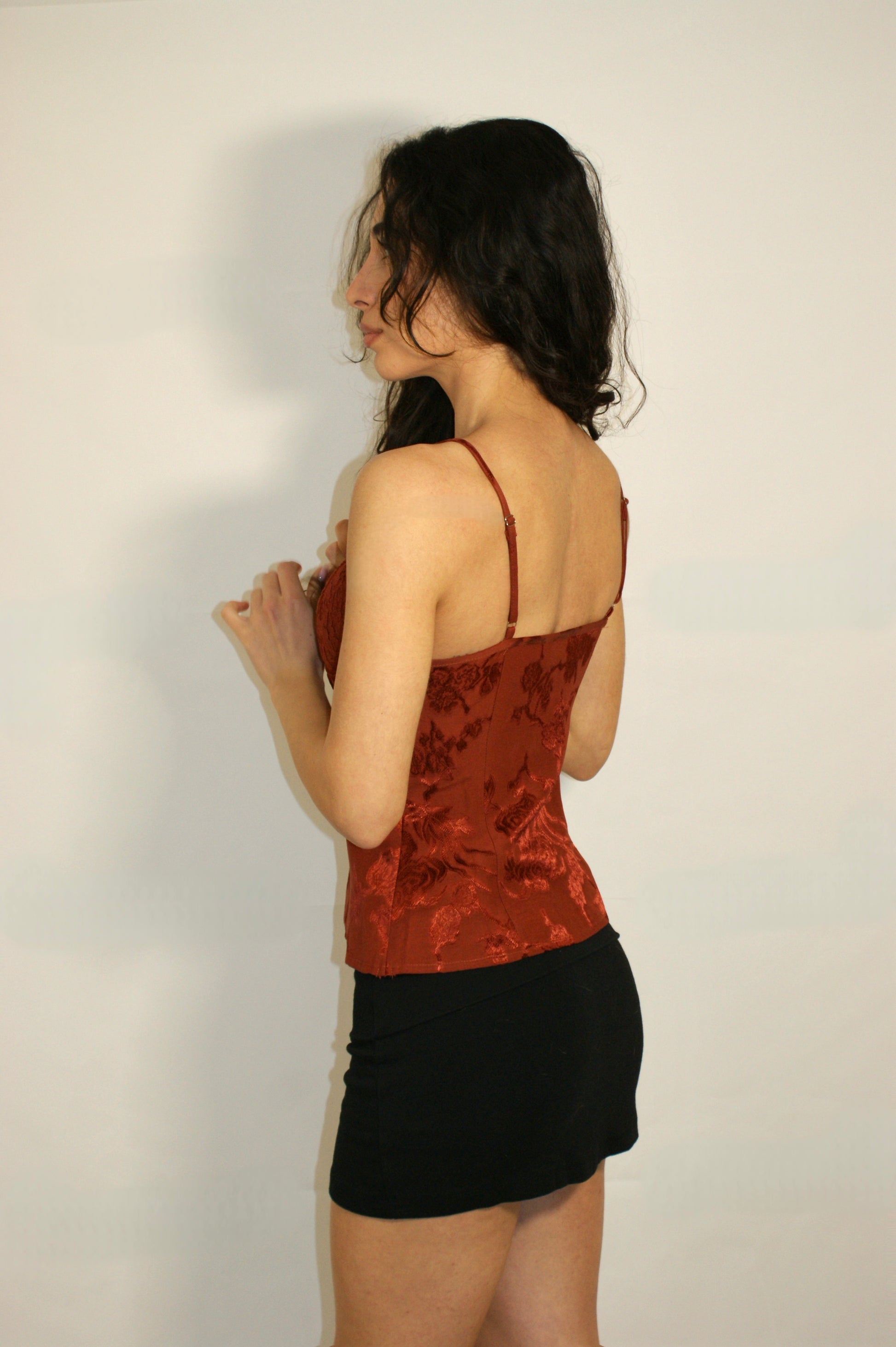 The top features a subtle floral pattern with lace cups, princess seams, and an invisible side zipper, creating a structured silhouette without using uncomfortable underwire.
