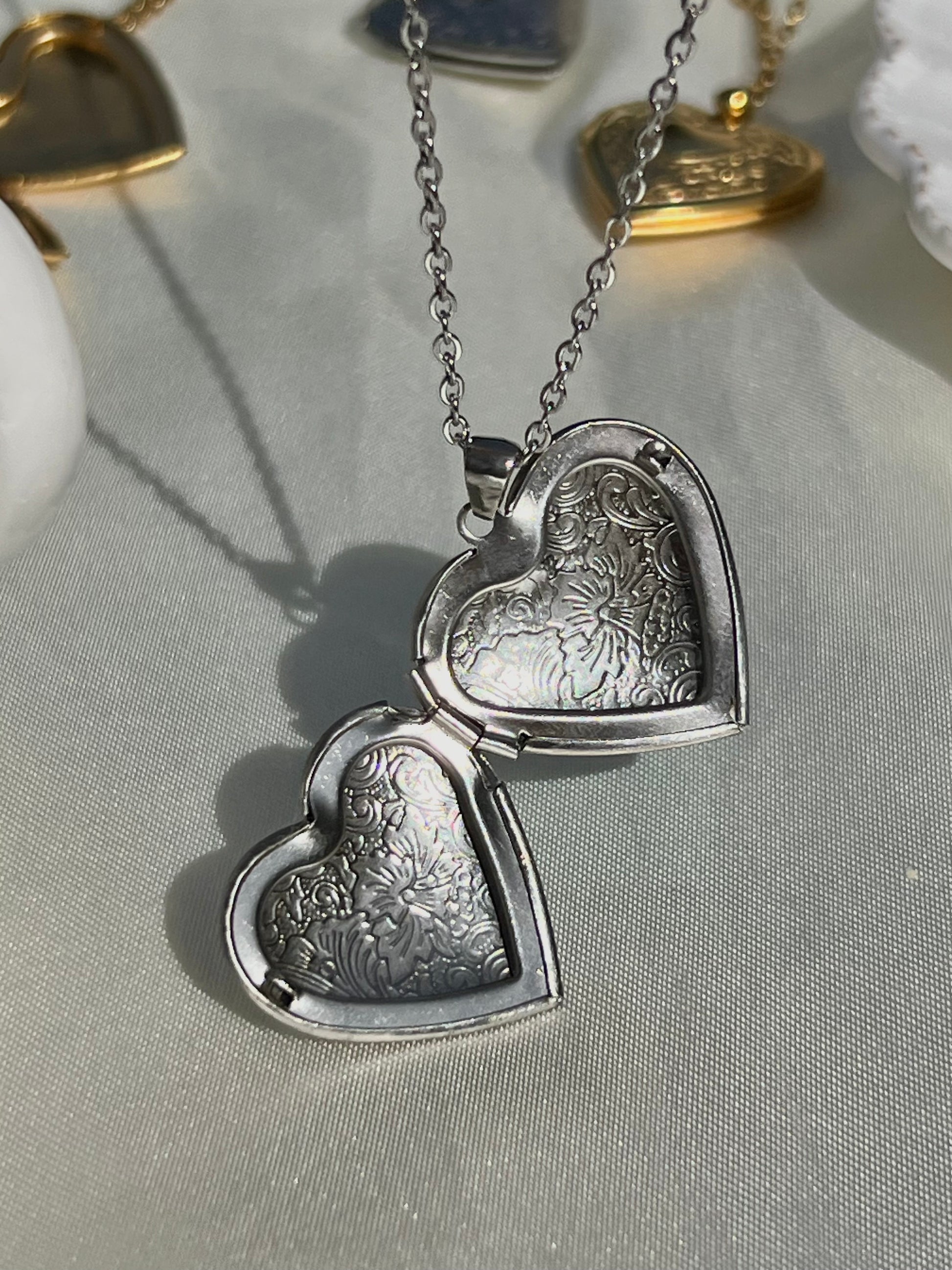 Our locket is a timeless heart shaped piece designed to keep your most precious memories close. Crafted in high quality stainless steel, it is made to last with a polished finish that will not tarnish. Its delicate heart silhouette and fine detailing give it a vintage charm, while its durable design makes it perfect for everyday wear.